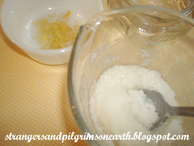 Place your "lemon scrub" into a jar because it is already done! For best results, use within 6 months.