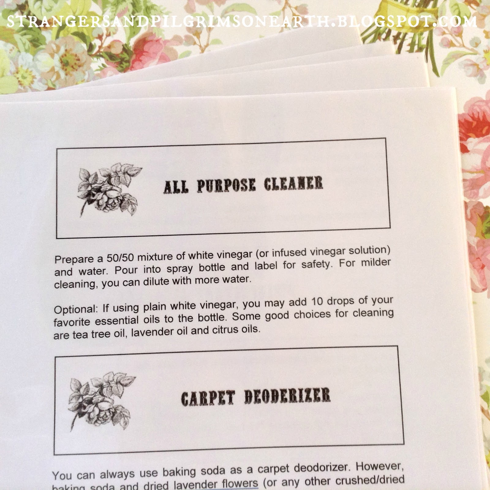You will find our printable cleaning product recipes HERE. We like to cover ours in plastic sheet protectors in order to prevent damage from spills, etc and store them in our home management binder or our herbal. You may also be interested in pretty labels for your cleaning products. Happy housecleaning, ladies!