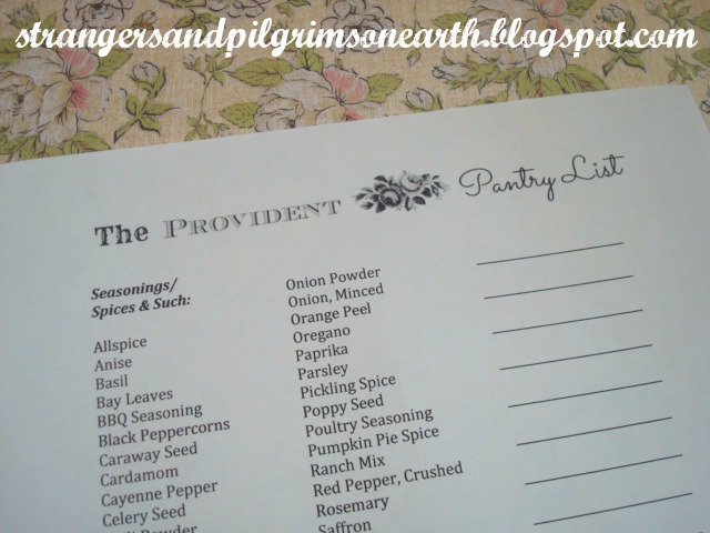 I hope this basic printable will be a guideline for inspiring you to prepare your own healthy and provident pantry! Simply download the "Provident Pantry" list from HERE. You may also be interested in our matching pantry labels or our other household printables.