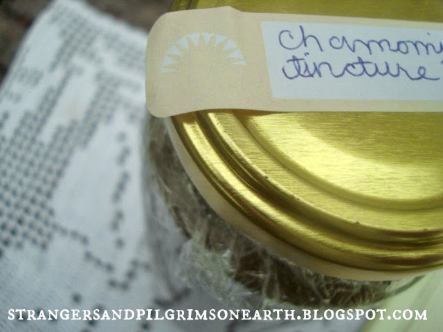 Note: If you want to do a sweet, glycerin based-tincture, here is a tutorial that you can use with chamomile. Though the medicinal properties aren't as strong as the alcohol based tincture, the benefit is that your children will love the taste.