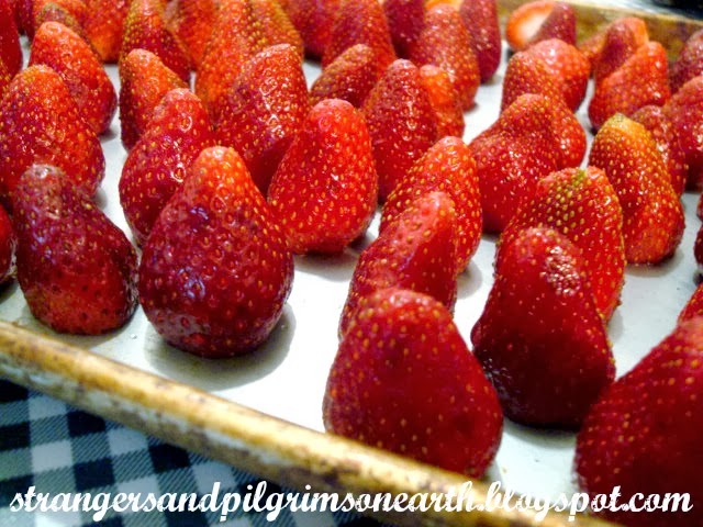 We also prepared some fruit leather with our left over strawberries. Dipping them in chocolate makes them into a delightful dessert. Might I also mention that the jam would be delicious in our fruit and cereal grain bar recipe? However, when all is said and done, our favorite way to utilize the strawberry is to eat them while they are still nice and fresh (and as much as we can)! They are "jam" packed with vitamin c so I find them to be the tastiest supplement in God's pharmacy!
